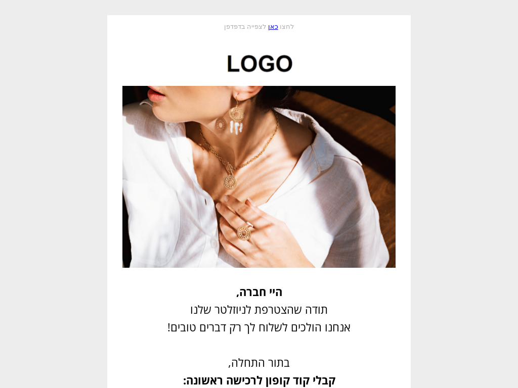 מסר לאחר הרשמה לתפוצה - קוד קופון