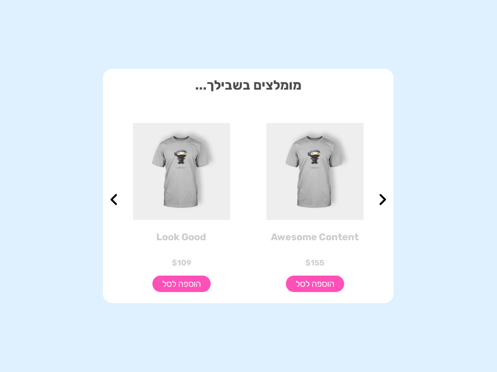 עמוד עגלה - מוצרים מומלצים על בסיס פרופיל הלקוח