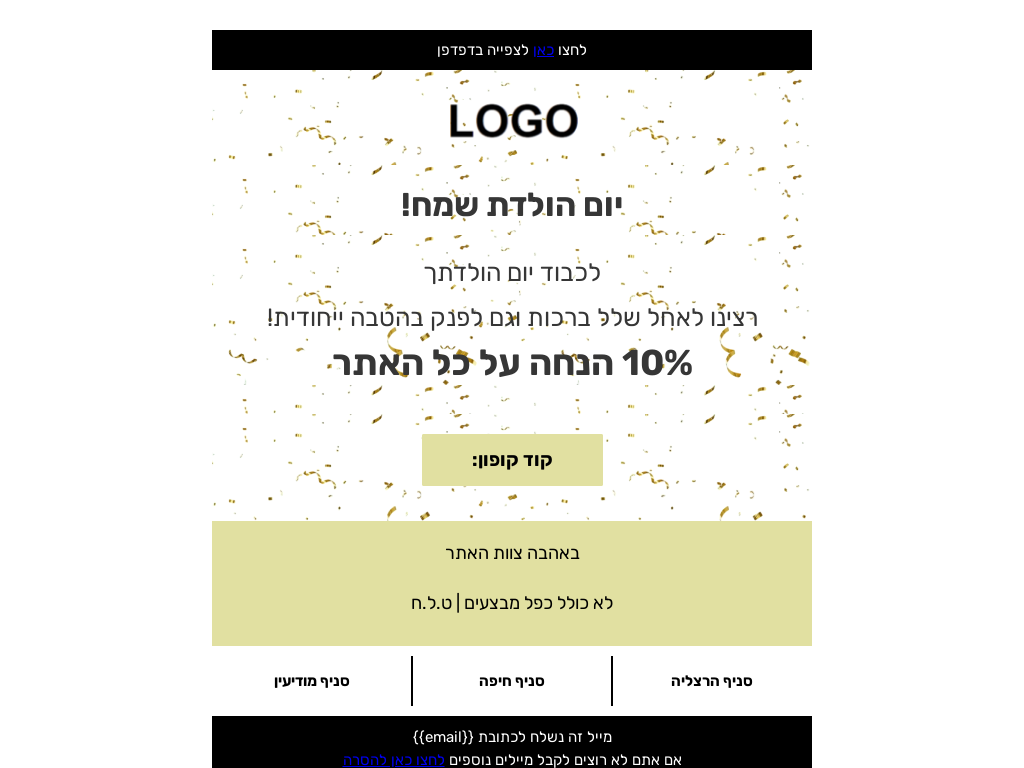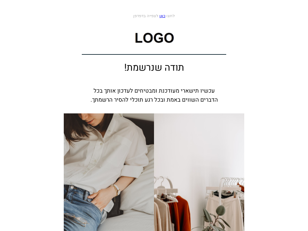 מסר לאחר הרשמה לתפוצה - קוד קופון