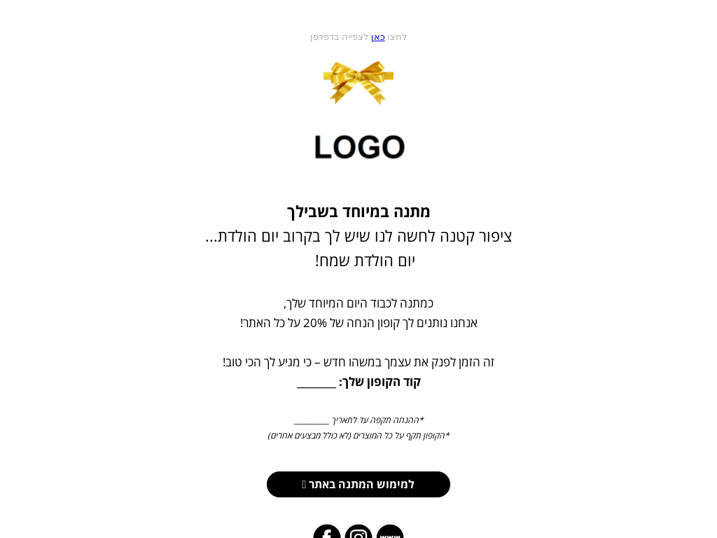 מסר ברוכים הבאים ללא קוד קופון - שחור לב...