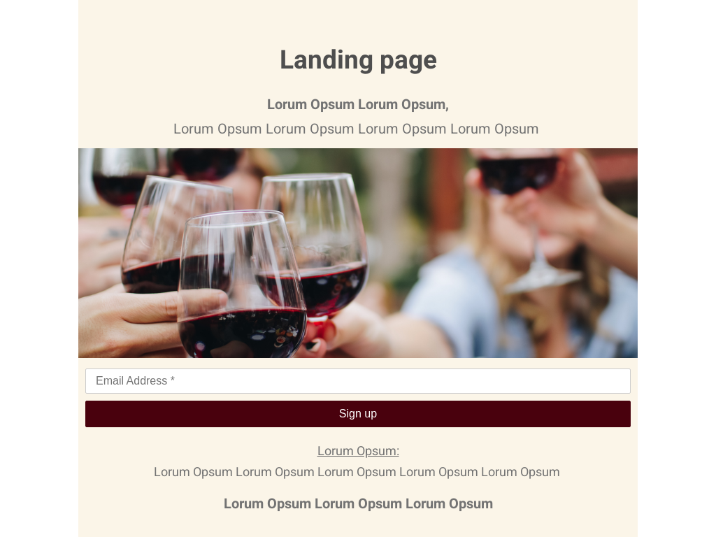 Landing Page Information & sign-up