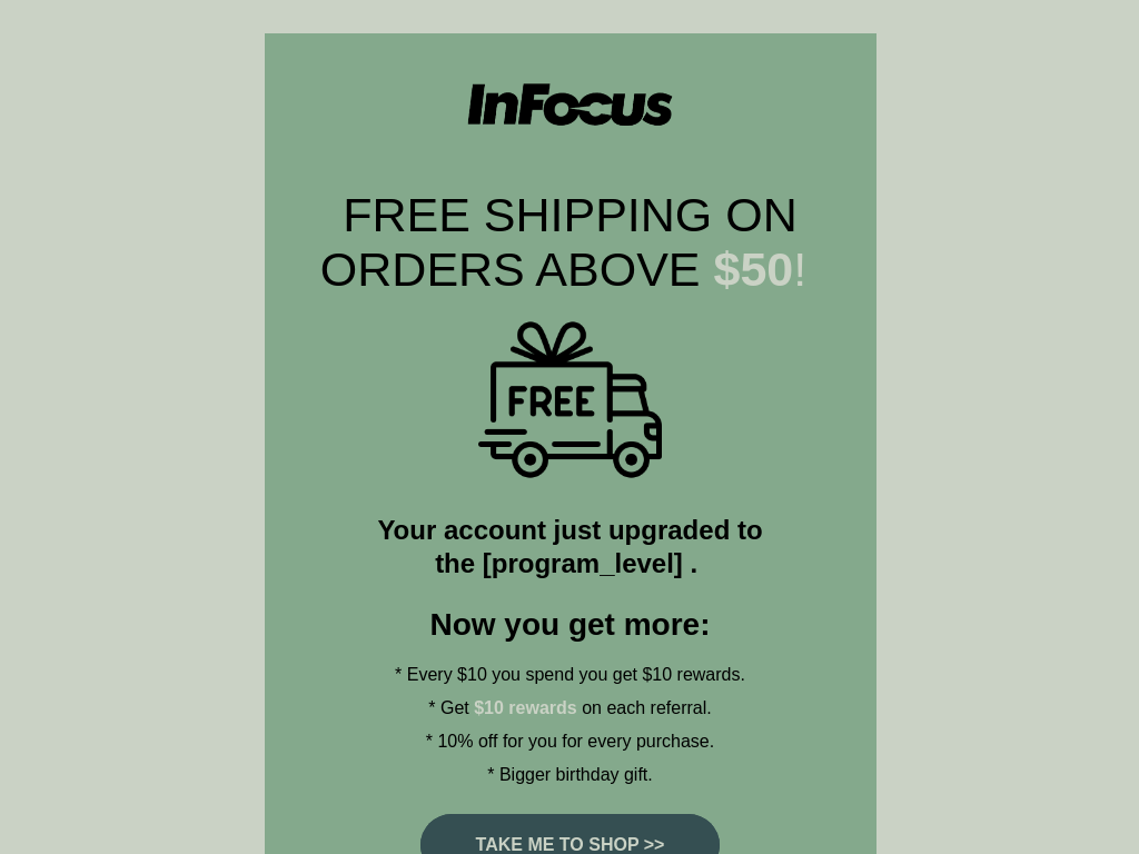 This email will be sent out to customers when they enter a new VIP tier. If you’re giving a coupon to customers for entering a tier, it’s very important to include their corresponding discounts code in this email.